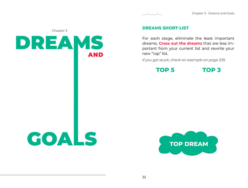 In this chapter, it's time to transform your big dreams into long-term and short-term goals. You'll have the flexibility to map out your goals by year, choosing the best timeline.